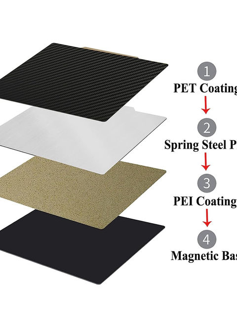 Double-sided PEI spring steel build plate. Easy part removal and excellent adhesion.